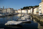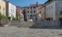 Prvomajki trg Prvomajski trg (včasih Stari trg, italijansko Piazza vecchia) je eden od trgov v Piranu. Trg odlikujejo baročna arhitektura in plastike. Stari trg je bil upravno središče mesta vse do 13. stoletja. Tu je stala stara mestna palača. Do današnjega dne se je na trgu ohranila cerkev svetega Donata, zgrajena v prvi polovici 14. stoletja. Na sredi trga stoji kamnit zbiralnik deževnice, ki zajema skoraj celotno površino trga. Zgradili so ga po hudi suši leta 1775. Na ploščad vodijo stopnice, ki jih krasita alegorična kipa Postave in Pravice. Na ščitu Postave beremo podatke o vodnjaku: letnico, opis namena gradnje in imena meščanov, ki so prispevali sredstva za njegovo gradnjo. Na ščitu Pravice pa so mestni grb, grb družine Marcello in grb rodbine Bemba. Trg 1. maja ali Stari trg (Piazza vecchia), kot se je prvotno imenoval, je središče stare Punte. Nanj se stekajo glavne piranske ulice. Trg je priljubljeno zbirališče piranskih otrok. V poletnih mesecih so na osrednji ploščadi številne glasbene, plesne in gledališke prireditve. Stari trg je bil upravno središče mesta vse do 13. stoletja. Tu je stala stara mestna palača (Danes na tem mestu stoji gostišče Delfin). Do današnjega dne se je na trgu ohranila cerkev sv. Donata, zgrajena v prvi polovici 14. stoletja. Njena notranjost je namenjena prodajni galeriji. Na sredi trga stoji kamnit zbirlanik vode - deževnice. Zgradili so ga po hudi suši leta 1775. V zadnjem delu zbiralnika sta dva kipa puttov na podstavku: prvi drži ribo, drugi posodo. V zbiralnik so speljani žlebovi s streh okoliških hiš. Voda je pronicala sokozi kamnite bloke, pesek in mivko ter se prečiščena zbirala v velikem vodnjaku. Na sredi ploščadi se nahajata dva manjša vodnjaka, ki pa sta služila za čiščenje velikega vodnjaka. Sodna palača Sodna palača je bila zgrajena na mestu, kjer je stal v 14. stoletju Fontik, skladišče za žito in moko, ki so mu v 16. stoletju dodali še stavbo mestne zastavljalnice. Gradnjo sodne palače sta vodila Giuseppe Moso in Enrico Nordio. O obnovitvenih delih nam poročajo napisne plošče vzidane ob portalih na severni fasadi palače. Sprehajalna pot Bernardin - Piran Sprehajalna pot Bernardin – Piran je slikovita krajša pot, ki nas vodi mimo kulturnih znamenitosti, restavracij s pestro kulinarično ponudbo, lokalov, hotelov in drugega. Med celotno potjo se nam nudi čudovit pogled na morje. Bernardin je zaokrožen večji turistični kompleks, kjer se je sredi zgradb ohranil cerkveni stolp nekdanjega benediktanskega samostana. Kompleks obsega Grand hotel Bernardin, hotel Histrion, hotel Vile Park, kongresni center Bernardin, Wellness, Laguno Bernardin, Casino Bernardin in Marino Bernardin. Samostan s cerkvijo sv. Bernardina so ukinili leta 1806, kot tudi druge samostane na območju Istre, če že niso bili razpuščeni z dekretom Jožefa II. v letu 1783. Avstrijska vojska je samostansko poslopje spremenila v trdnjavo za obrambo zaliva, kasneje pa je zgradbo uporabljala davčna in carinska uprava. Piran je staro pristaniško mesto, ki je ohranilo srednjeveško zasnovo z ozkimi ulicami in tesno stisnjenimi hišami. Vse te posebnosti Piranu dajejo tipičen mediteranski značaj in poseben čar. Nad hišami na hribu gospoduje baročna cerkev svetega Jurija z visokim razglednim stolpom in z vrsto slikarskih umetnin v notranjosti.