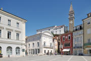 Cankarjevo nabrežje Piran je čudovito srednjeveško mesto ob slovenski obali, ki privabi mnogo domačih in tujih turistov. Cankarjevo nabrežje se nahaja v notranjem pristanišču Pirana. Na nabrežju lahko vidite Muzej podvodnih dejavnosti, zanimivo stavbo z vklesanim levom, palači Ventrella in Fonda, palačo Gabrielli, majhen park v bližini Pomorskega muzeja in drugo. V tem delu se nahaja znana restavracija Altana in hotel Tartini Piran. V Muzeju podvodnih dejavnosti imajo prikazano Slovensko potapljanje in svetovno zgodovino potapljanja, Avstro – ogrska monarhijo, Kraljevino Jugoslavijo, Kraljevino Italijo, SFRJ in Republiko Slovenijo. V muzeju si boste lahko ogledali prikaze potapljanja od njegovih začetkov do danes. Razstavljene imajo ročne tlačilke, starodavno potapljaško opremo, skafandre, športno potapljaško opremo, podvodno orožje, diverzantsko potapljaško opremo, modele podmornic in še mnogo drugega. V palači Gabrielli je sedež Pomorskega muzeja »Sergej Mašera« Piran. Muzej je bil ustanovljen leta 1954. Palača Gabrielli je bila zgrajena v klasicističnem slogu sredi 19. stoletja. V muzeju proučujejo, zbirajo in predstavljajo pomorsko preteklost slovenskega obalnega področja, pomorsko preteklost in na pomorstvo vezane gospodarske panoge. Urejeno imajo pomorsko, arheološko, kulturnozgodovinsko in etnološko zbirko z ribiškim in solinarskim oddelkom. Del ustanove je tudi restavratorski oddelek in bogata knjižnica. Gledališče Guiseppe Tartini Gledališče Guiseppe Tartini, znano tudi kot Tartinijevo gledališče je gledališče v Piranu in tudi mestna znamenitost.Prvotno je bilo mestno gledališče predvideno na prostoru nekdanje Mestne hiše oziroma za njo. Zgradili so le novo Mestno palačo, prostor, ki je bil predviden za izgradnjo gledališča, pa je ostal nepozidan. Načrt za Tartinijevo gledališče je delo Gioachinna Grassija in Giocoma Zamattia, s poslikavo pa je sodeloval še slikar Napoleon Cozzi. Vhodni prostor in gledališka dvorana sta arhitektonsko razkošno urejena in obogatena s poslikavami. Loža Stara mestna Loža je stala na mestu današnjih Obalnih galerij. Z ene strani je bila povezana z Mestno hišo, z druge pa s cerkvijo sv. Jakoba. V mestnih statutih iz leta 1384 je zapisano, da je bil v Loži urad kataverjev, varuhov občinskega premoženja. V njej so se zbirali mestni veljaki. Na njenem mestu so kasneje zgradili današnjo Kazino. Mestna galerija Piran Mestna galerija Piran je v Sloveniji in na obali eden najpomembnejših razstavnih prostorov. V domačih in evropskih likovnih krogih zavzema izredno pomembno mesto v predstavitvi moderne umetnosti. Do sedaj so v piranski galeriji razstavljali mnogi umetniki svetovnega slovesa. Tukaj se tudi odvijajo razstave ob mednarodnih srečanjih arhitektov, dogodek leta pa je vsekakor veliki piranski ex-tempore, na katerem sodeluje tudi več kot petsto umetnikov iz vse srednje Evrope.